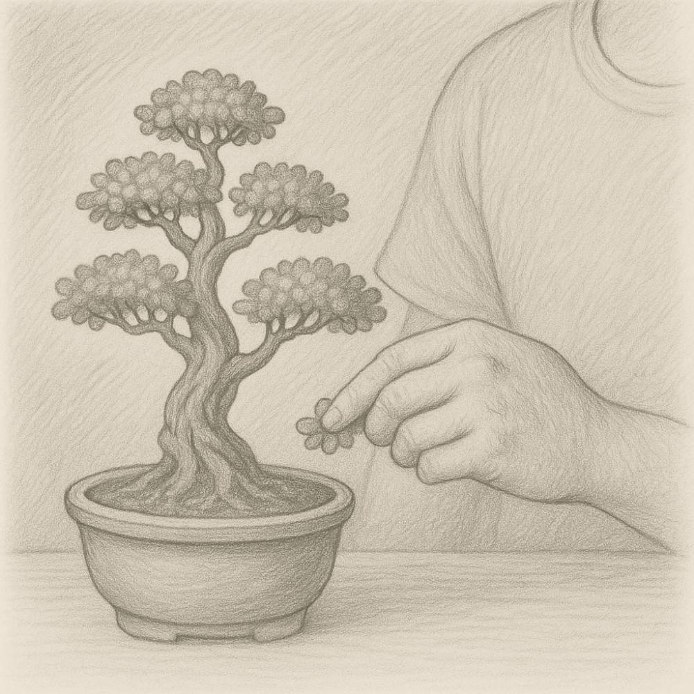Vi väljer ut varje träd med omsorg och tittar på form, hälsa och karaktär. Varje bonsai har sin egen historia, och vi hjälper den historien att fortsätta växa.